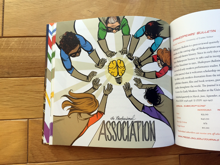 I had the honor of being asked to do the cover and interior art for the 2016 Johns Hopkins University Press Scholarly Journals Subscription catalog, and it came out looking INCREDIBLE! Working alongside the talented Keli Strickland, she developed characters for each of the groups whose hard work goes in to putting together the journals year after year. My part was to come up with some superhero-esque personifications of each group and blend them with Keli's ideas.